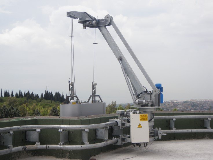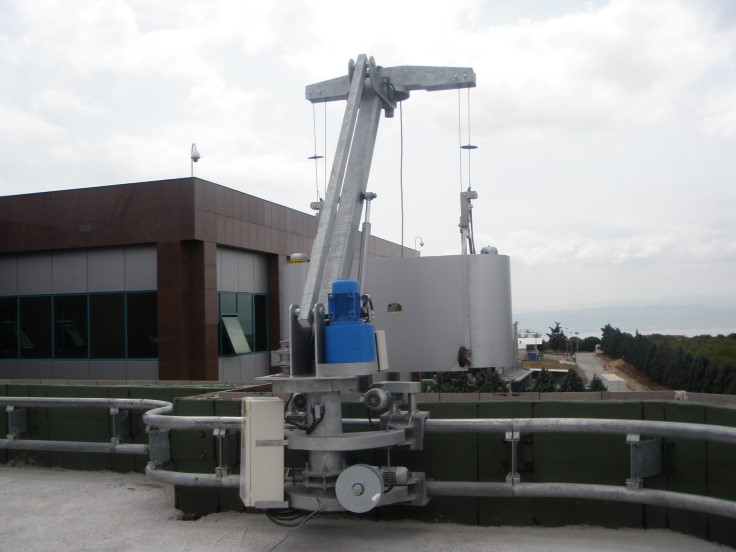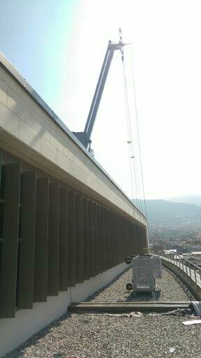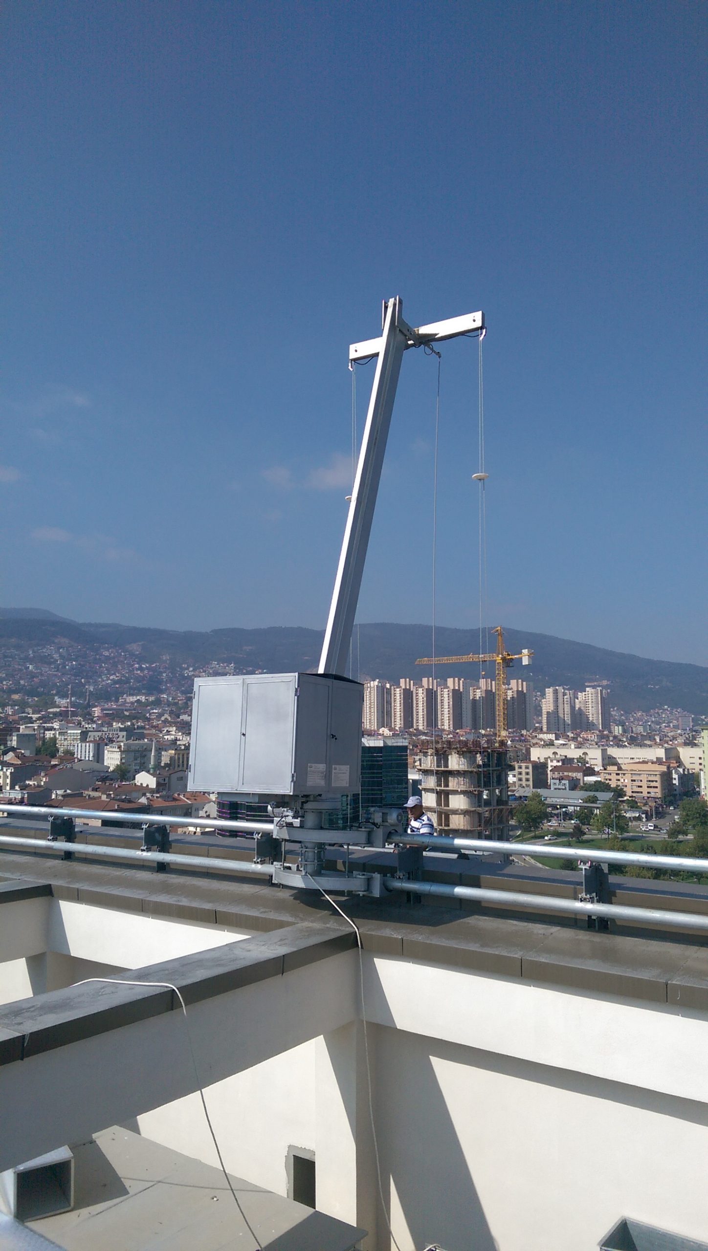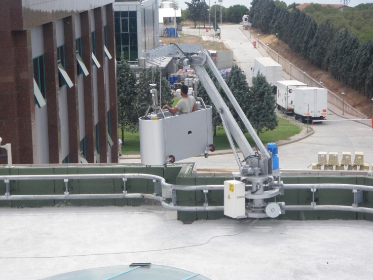 After working on the facade, the system is parked on the terrace. Reducers on the facade turn system are 0.75 kW 12d/d.