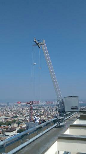 Since the building maintenance units are continuously subjected to bad working conditions, the terrace unit and work platform are subjected to sandblasting process, then special industrial paintings and professional handles are made ready for shipment by adding warning labels to necessary places after painting.