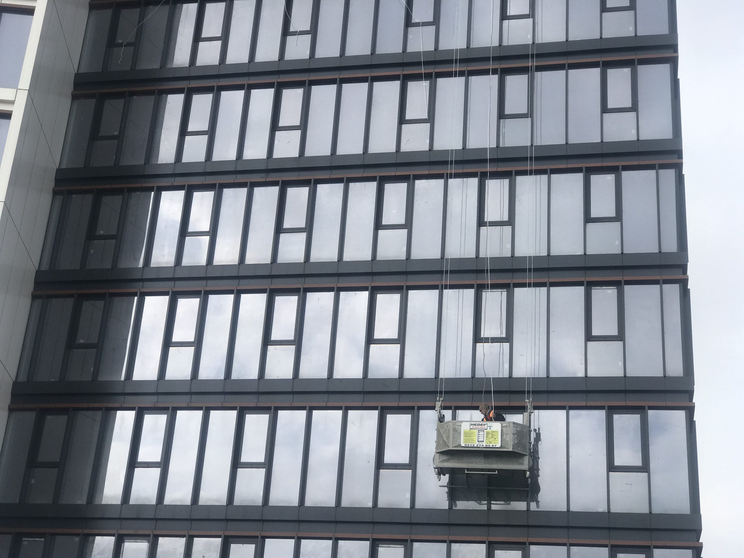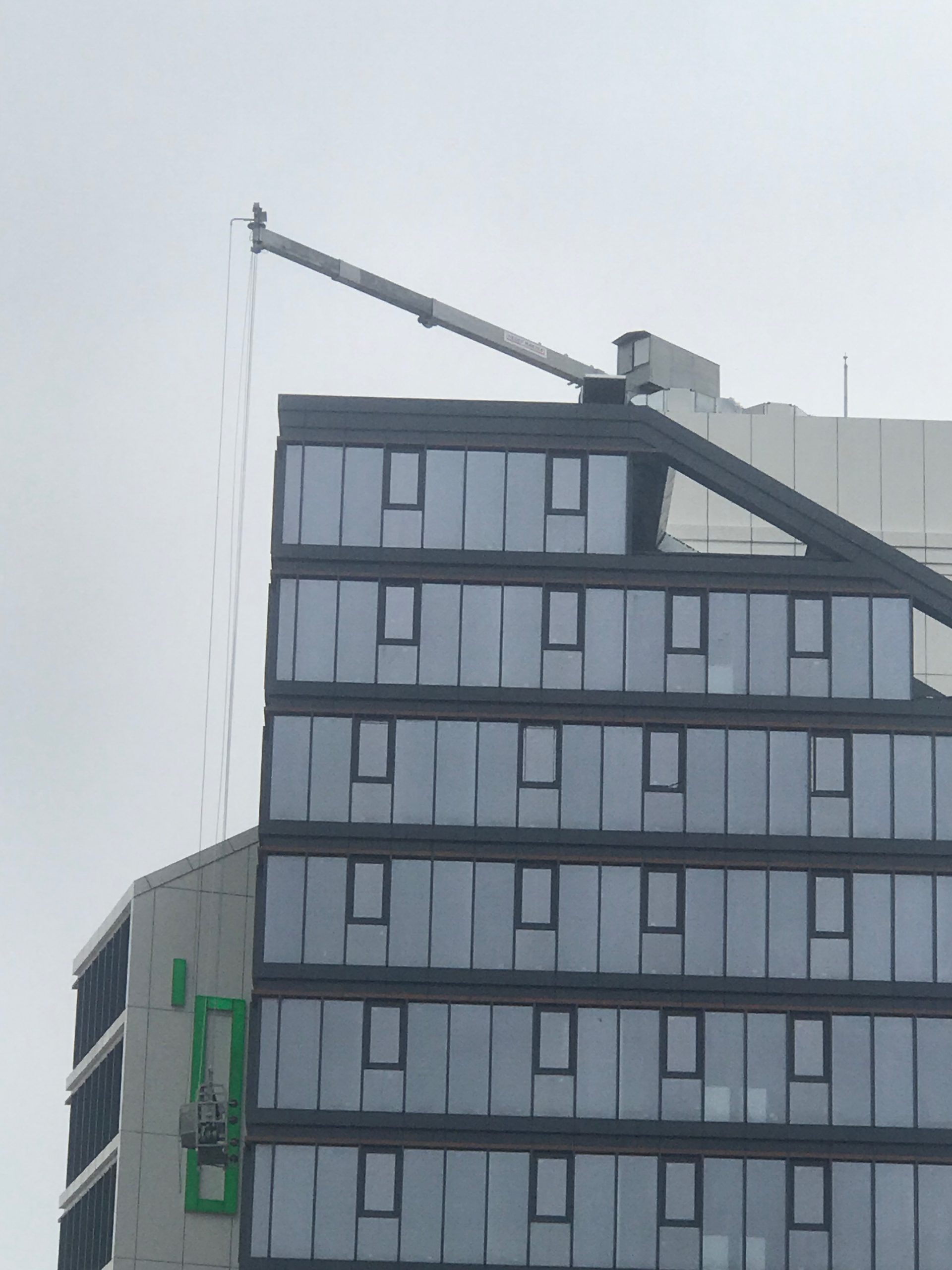 After working on the facade, the system is parked on the terrace. Reducers on the facade turn system are 0.75 kW 12d/d.